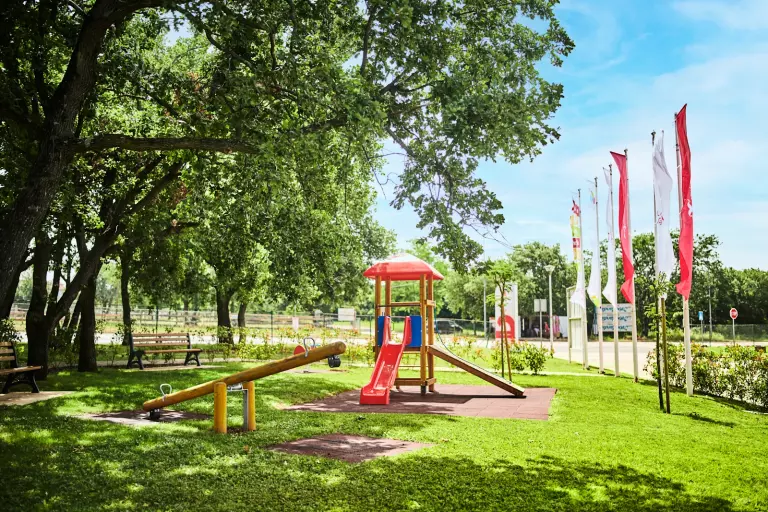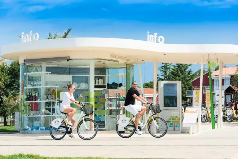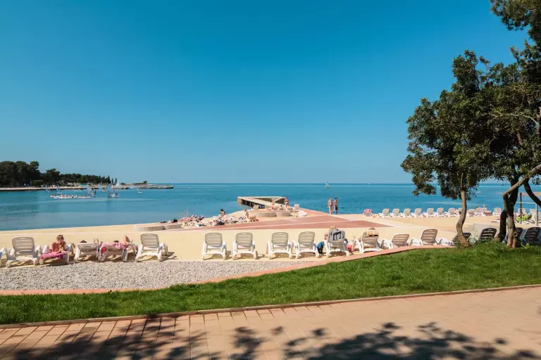 Côté restauration, vous trouverez sur place une pizzeria, un restaurant rapide, plusieurs bars et commerces. Un petit train touristique relie régulièrement Umag, ou vous pouvez rejoindre la ville à pied en une quarantaine de minutes.