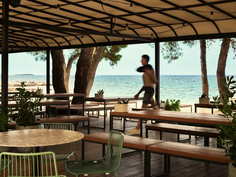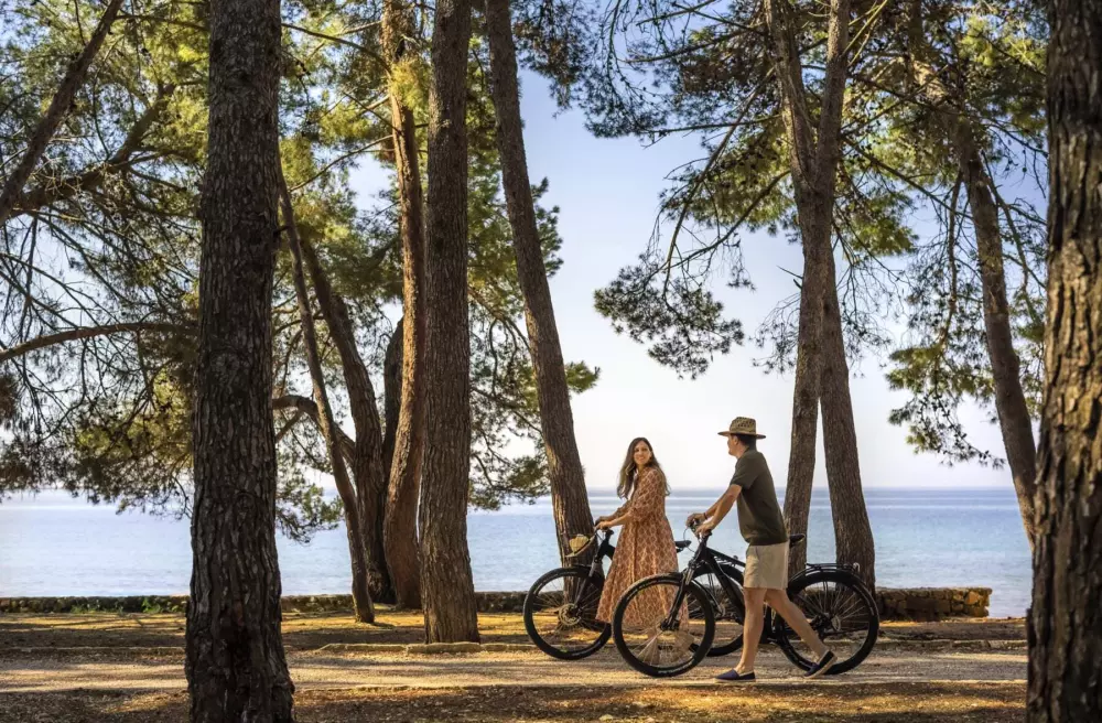 Situé dans un écrin de verdure au bord de la mer, le Resort Villas Rubin*** bénéficie d'un accès direct à la plage et d'un environnement propice à la détente. La nature y est omniprésente, entre pinède parfumée, criques rocheuses et sentiers côtiers. Le complexe se trouve à environ 3 km du centre historique de Rovinj, accessible à pied, à vélo ou en petit train touristique, ce qui permet d'alterner facilement farniente et découvertes culturelles.