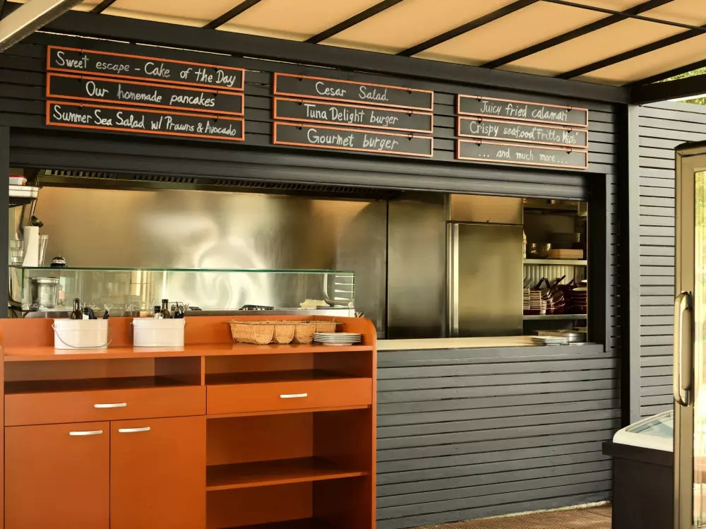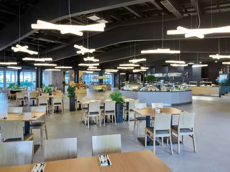 Côté services, le resort propose plusieurs options de restauration avec vue sur la mer : restaurant buffet, pizzeria, snack-bars et cafés. L'atmosphère y est conviviale et détendue.