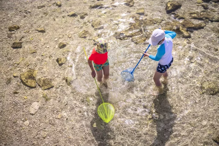 Sur place, tout est réuni pour combiner loisirs et repos : piscines extérieures pour adultes et enfants avec toboggans, plage aménagée, sports nautiques (plongée, planche à voile, canoë), courts de tennis, terrain de beach-volley, mini-golf et location de vélos. Pour les plus jeunes, le club enfants et les aires de jeux garantissent des moments de joie partagée. Des sentiers aménagés invitent à la promenade ou au footing en bord de mer, tandis que diverses animations rythment les journées en saison.