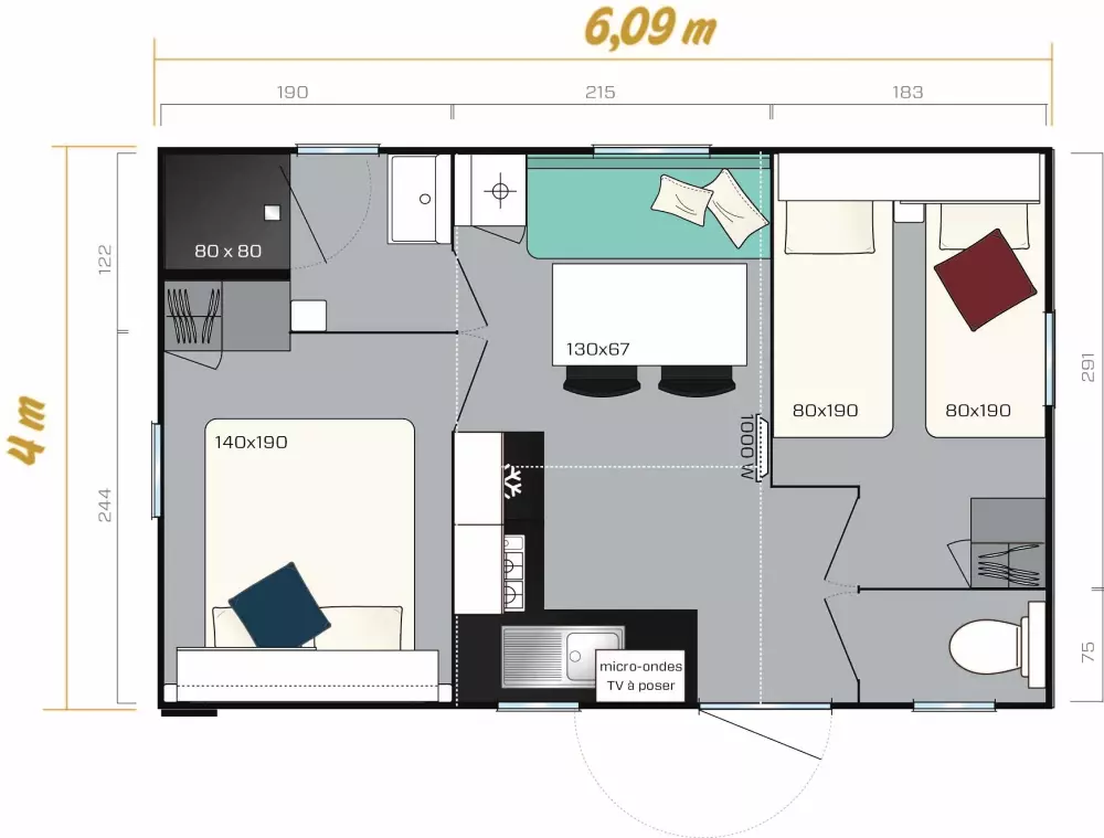 - Blocs sanitaires communs : 2