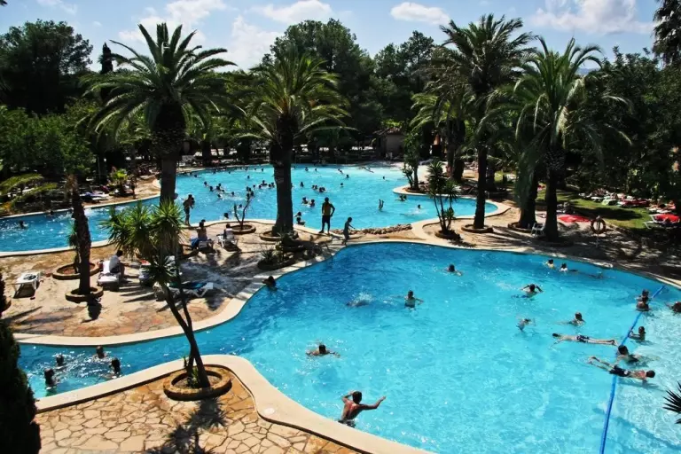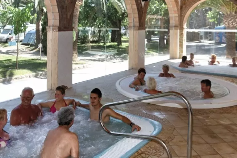 Camping Bungalow Wellness Resort avec une surface de de 24 ha de végétation méditerranéenne et zone tropicale dense et plus d' 1 km de plage de sable fin. Sanitaires grand luxe avec installations de qualité. Tous les services, 3 piscines Lagon Polynésienne, jacuzzi géant et animations continues pendant toute la saison. Espace wellness tropical en plein air.