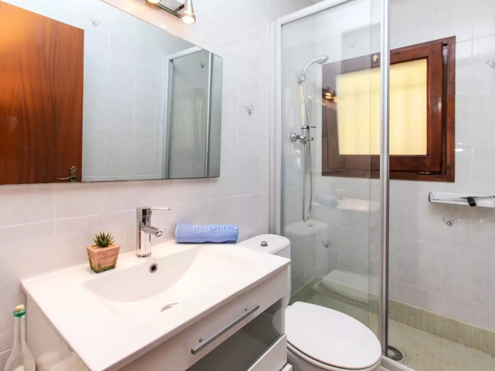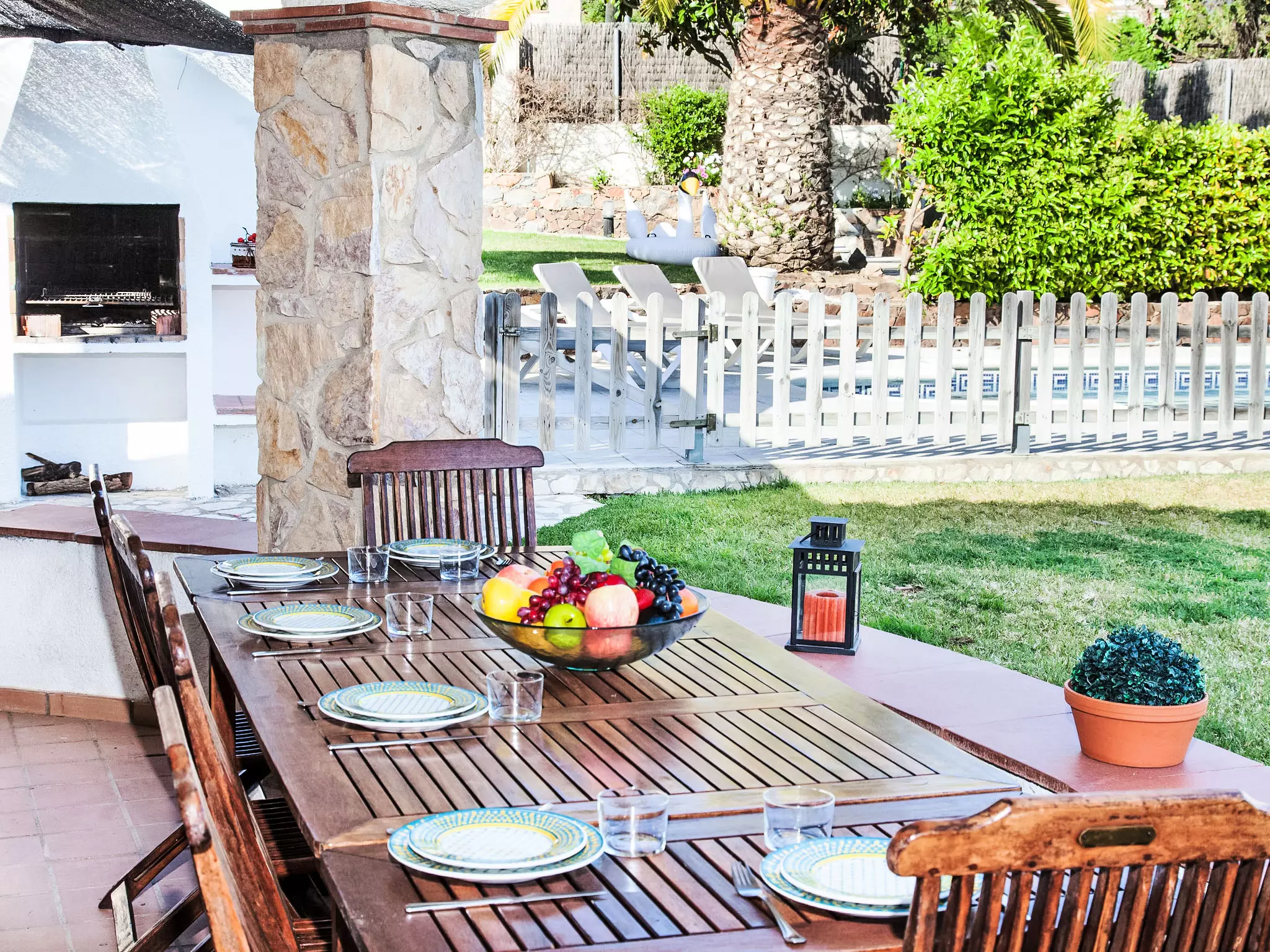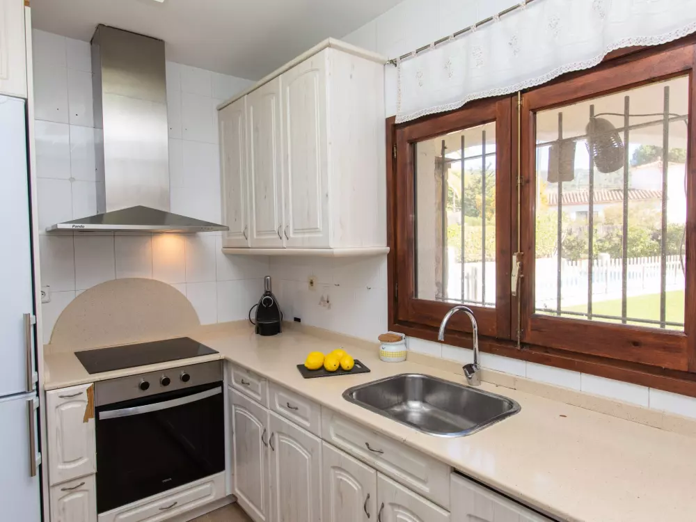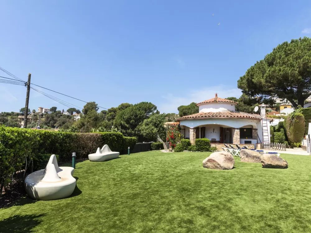 Mas Pere à 2 km de Calonge: Maison confortable "Mas Companys". En-dehors de la localité, à 2 km du centre de Calonge, situation ensoleillée, zone avec peu de trafic, à 6 km de la mer. A usage privé: beau jardin sur plusieurs niveaux entretenu (clôturé), jardin naturel (clôturé), piscine rectangulaire, cloturée (4 x 10 m, profondeur 80 - 180 cm, disponibilité saisonnière: 01.Mai. - 30.Oct.). Accès en voiture jusqu'à la maison par un chemin difficile de 1.6 km de long. Place de parking. Supermarché 2 km, restaurant 1 km, bar 1 km, arrêt de bus "Mas Pere" 1.5 km, plage de sable "Sant Antoni de Calonge" 6 km. Port plaisance 6 km, terrain de golf (18 trous) 6 km, centre équestre 12 km. Attractions à proximité: Waterpark 9 km. Veuillez noter: voiture recommandée. Le propriétaire n'accepte pas les groupes de jeunes.