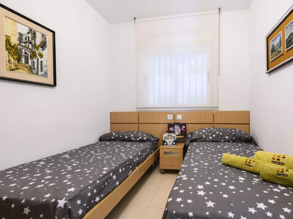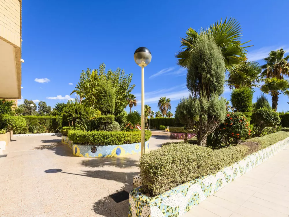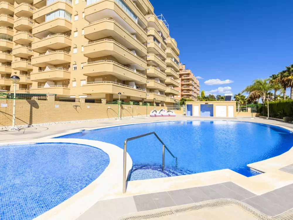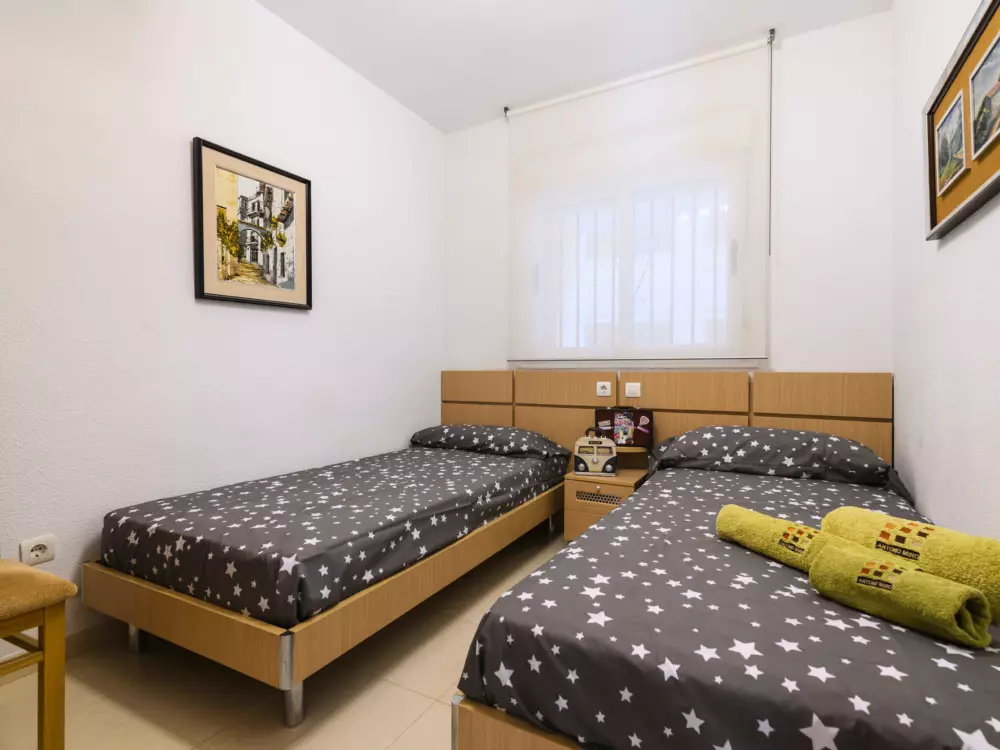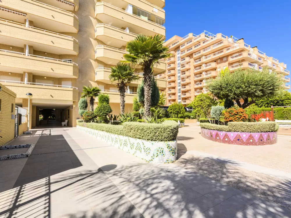 Zona Amplaries à 4 km de centro: Petite résidence confortable "Cala Blanca II - 1ª Linea". Situation ensoleillée, à 20 m de la mer, juste au bord de la plage, route à traverser. En commun: jardin, piscine (10 x 20 m, profondeur 70 - 230 cm, disponibilité saisonnière: 01.Jul. - 30.Sep.). Bassin pour les enfants, douche extérieure. Infrastructures de la Maison: ascenseur. Parking public possible dans la rue. Magasin d'alimentation 300 m, supermarché 700 m, restaurant, bar, café 500 m, arrêt de bus 400 m, gare ferroviaire 3.2 km, plage de galets 152 m, plage de gazon 100 m. Groupes de jeunes sur demande seulement. Environnement très sensible au bruit. Silence et bonne tenue exigés.