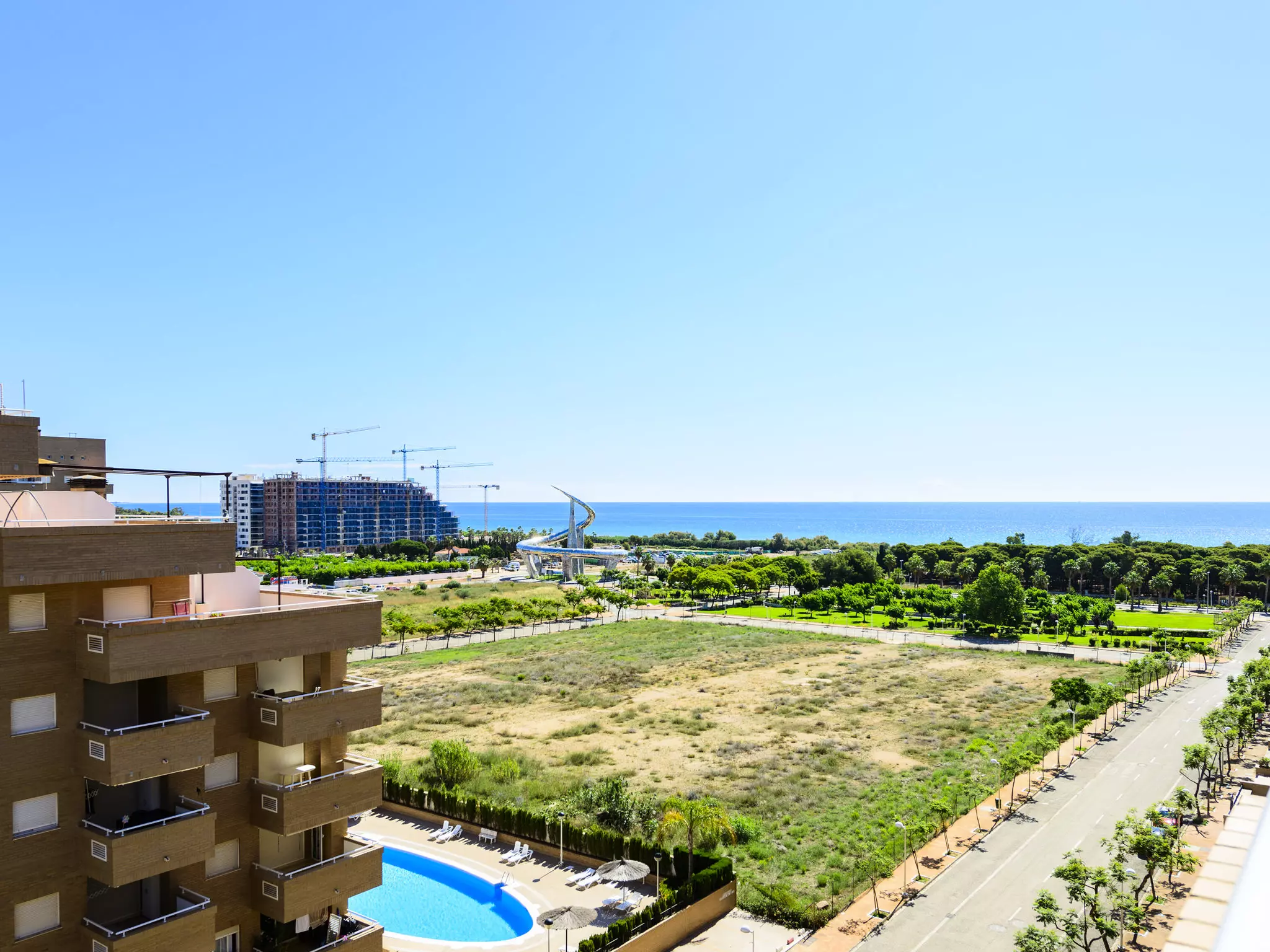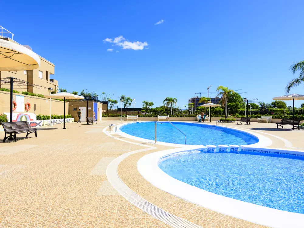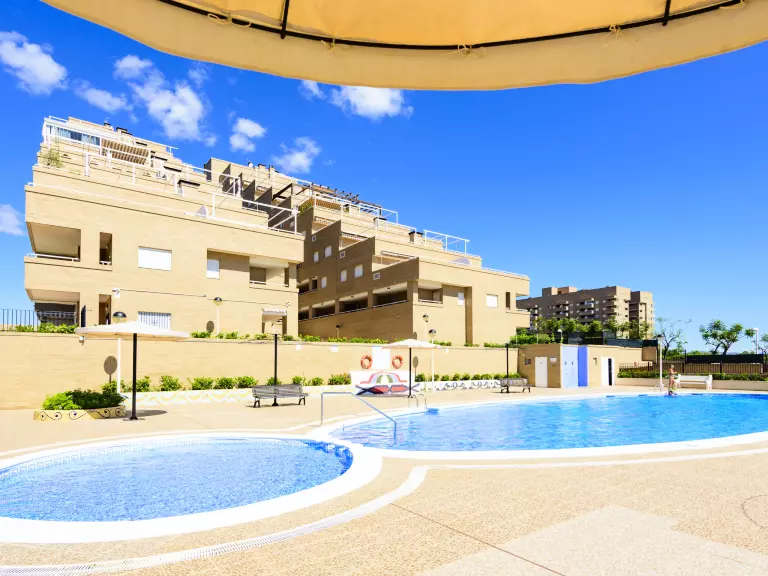 Jardines del Mar I: Résidence accueillante pour les enfants, accueillante "Jardines del Mar I". En bordure de la localité Oropesa del Mar, dans l'arrondissement Marina D'Or, situation animée, ensoleillée, à 300 m de la mer, à 300 m de la plage, sur une route principale. En commun: piscine (20 x 10 m, profondeur 70 - 230 cm, disponibilité saisonnière: 01.Mai. - 01.Oct.). WC dans l'espace piscine, espace de jeux pour les enfants. Infrastructures de la Maison: ascenseur. Place de parking près de la maison. Supermarché 1 km, restaurant 400 m, arrêt de bus 2 km, gare ferroviaire 4 km, plage de sable 400 m. Veuillez noter: adapté(e) aux familles, indiqué pour séniors. Autoroute 900 m de la maison. Route principale 300 m de la maison. Voie ferrée 3 km de la maison. Night-club/discothèque 300 m de la maison.