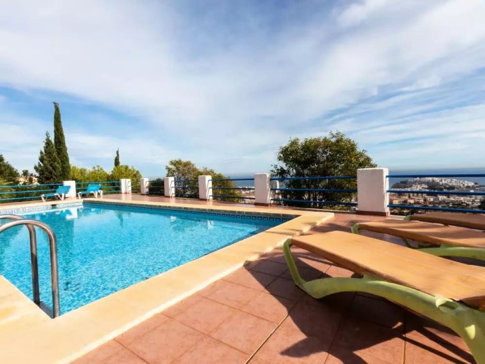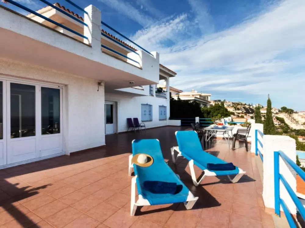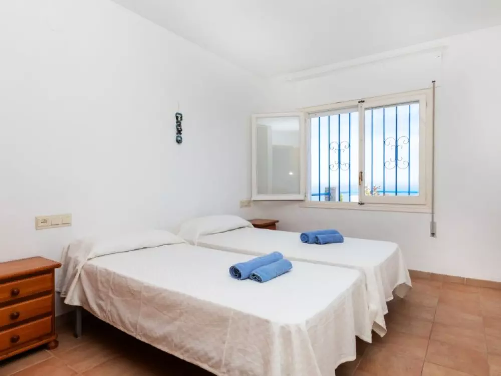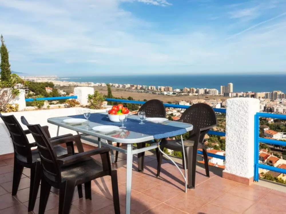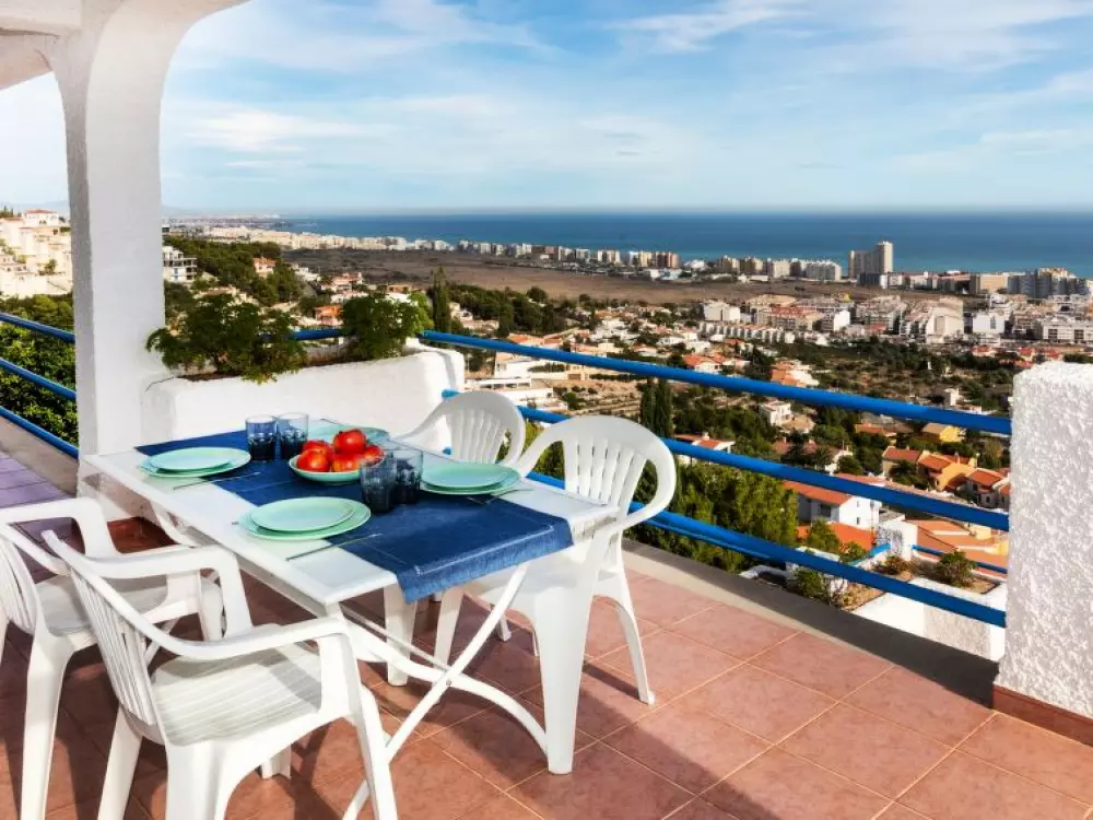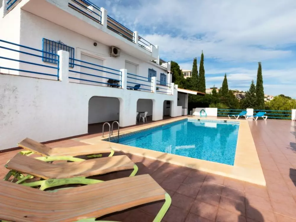 Maison à 3 apts "Karina". 3 appartements dans la même entité. Dans le haut de la station de Peñiscola, dans le quartier de Las Atalayas, à 2.5 km du centre de Peñiscola, à 130 km du centre de Valencia, à 130 km du centre de Tarragona, sur un versant, à 2.5 km de la mer. En commun: terrain 700 m2 avec plantes, piscine (11 x 5 m, disponibilité saisonnière: 01.Jun. - 15.Oct.). Douche/WC dans l'espace piscine, douche extérieure, terrasse, barbecue, parking public possible dans la rue. Supermarché 1.5 km, restaurant 1.5 km, arrêt de bus "Plaza de la Constitución" 2.5 km, gare ferroviaire "Benicarló-Peñíscola" 10 km, plage de sable "Playa Sur-Playa Norte" 2 km. Terrain de golf (18 trous) 30 km. Attractions à proximité: Peñiscola 2 km, Museo de las Artes y las Ciencias 125 km, Delta del Ebro 40 km, Port Aventura 100 km. Région de randonnées: Parque Natural Sierra d'Irta 5 km. Groupes de jeunes sur demande seulement.