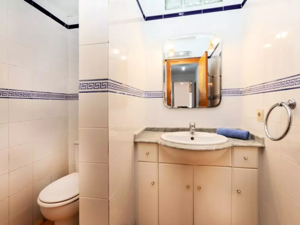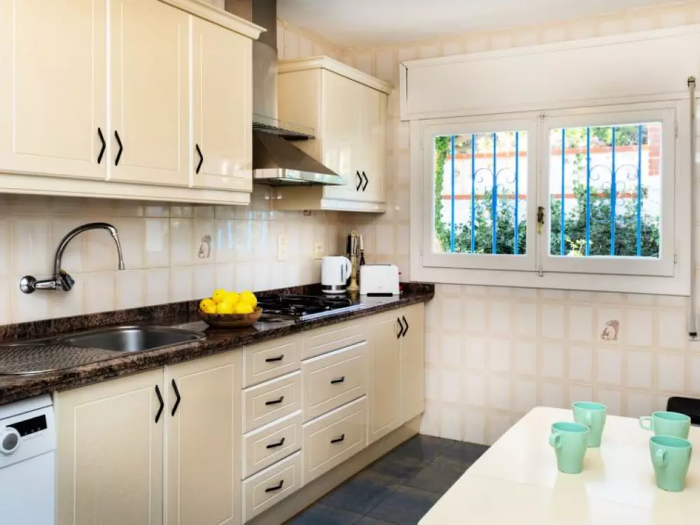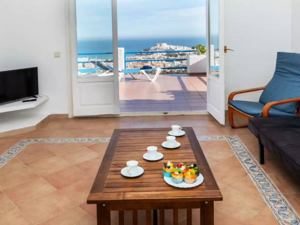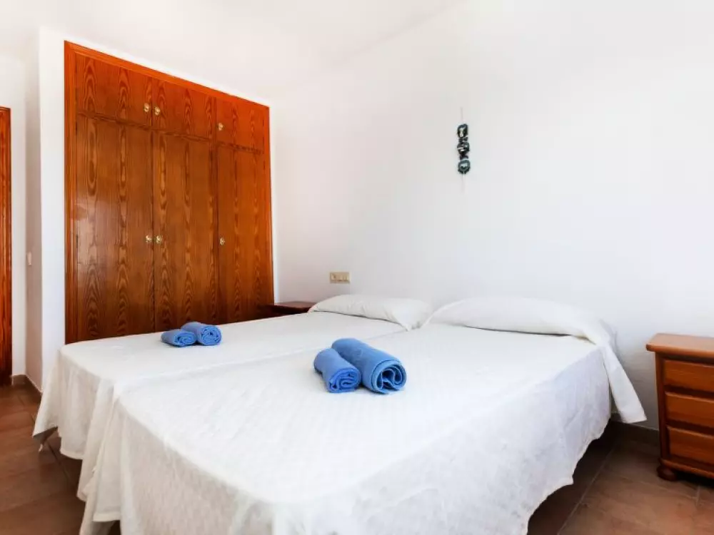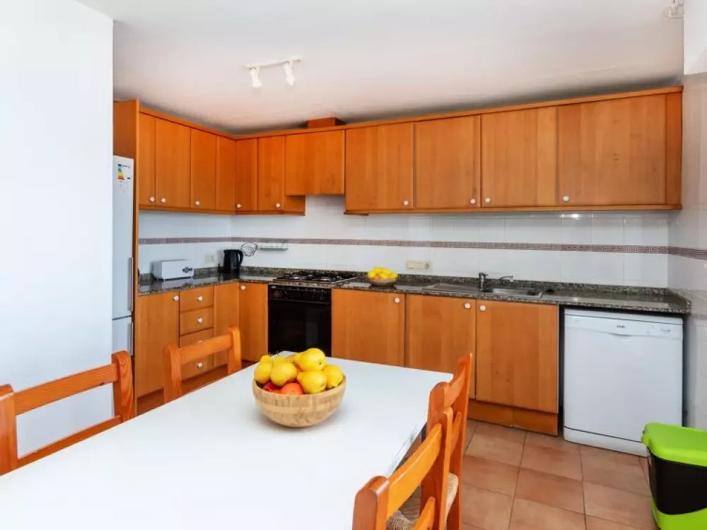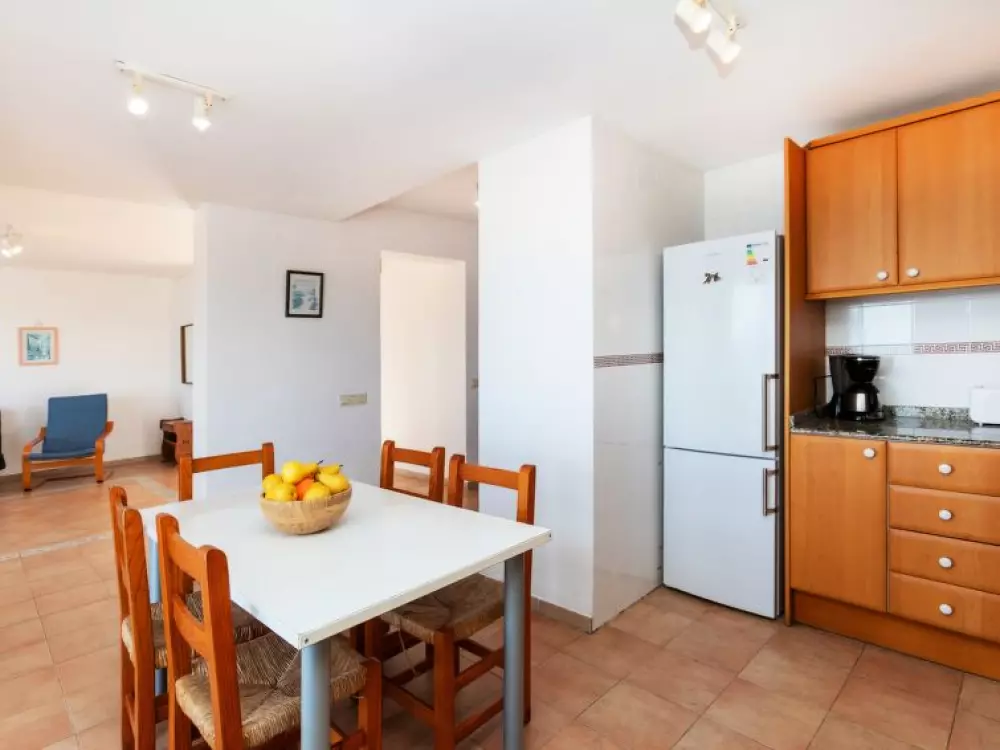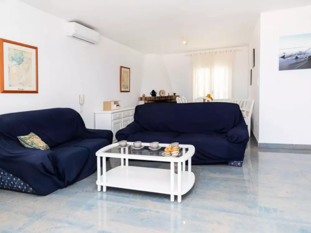 Maison à 3 apts "Karina". 3 appartements dans la même entité. Dans le haut de la station de Peñiscola, dans le quartier de Las Atalayas, à 2.5 km du centre de Peñiscola, à 130 km du centre de Valencia, à 130 km du centre de Tarragona, sur un versant, à 2.5 km de la mer. En commun: terrain 700 m2 avec plantes, piscine (11 x 5 m, disponibilité saisonnière: 01.Jun. - 15.Oct.). Douche/WC dans l'espace piscine, douche extérieure, terrasse, barbecue, parking public possible dans la rue. Supermarché 1.5 km, restaurant 1.5 km, arrêt de bus "Plaza de la Constitución" 2.5 km, gare ferroviaire "Benicarló-Peñíscola" 10 km, plage de sable "Playa Sur-Playa Norte" 2 km. Terrain de golf (18 trous) 30 km. Attractions à proximité: Peñiscola 2 km, Museo de las Artes y las Ciencias 125 km, Delta del Ebro 40 km, Port Aventura 100 km. Région de randonnées: Parque Natural Sierra d'Irta 5 km. Groupes de jeunes sur demande seulement.