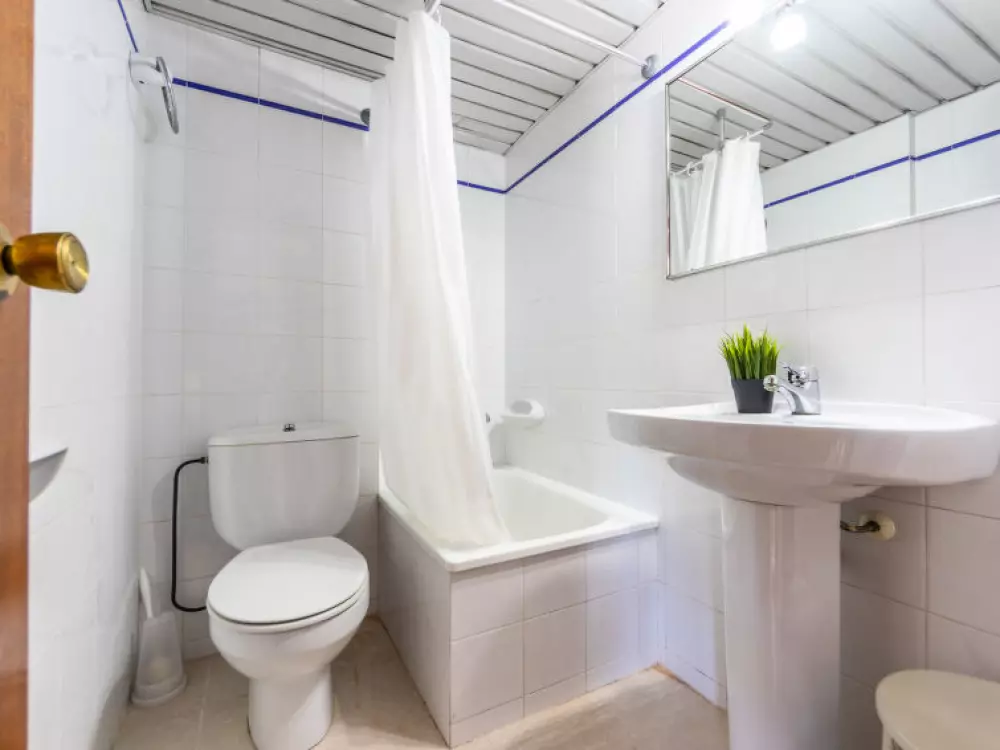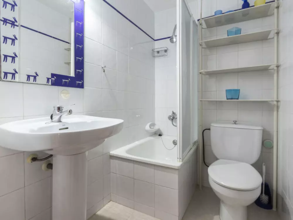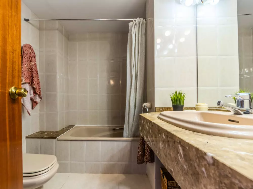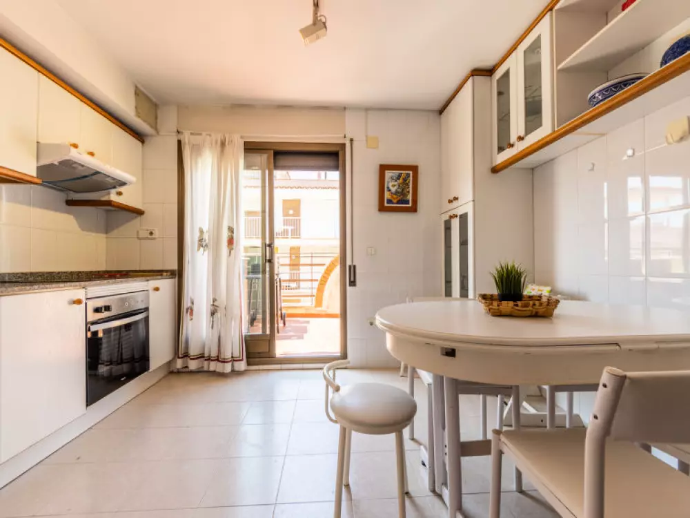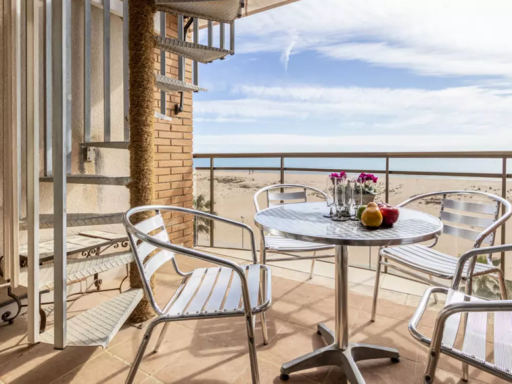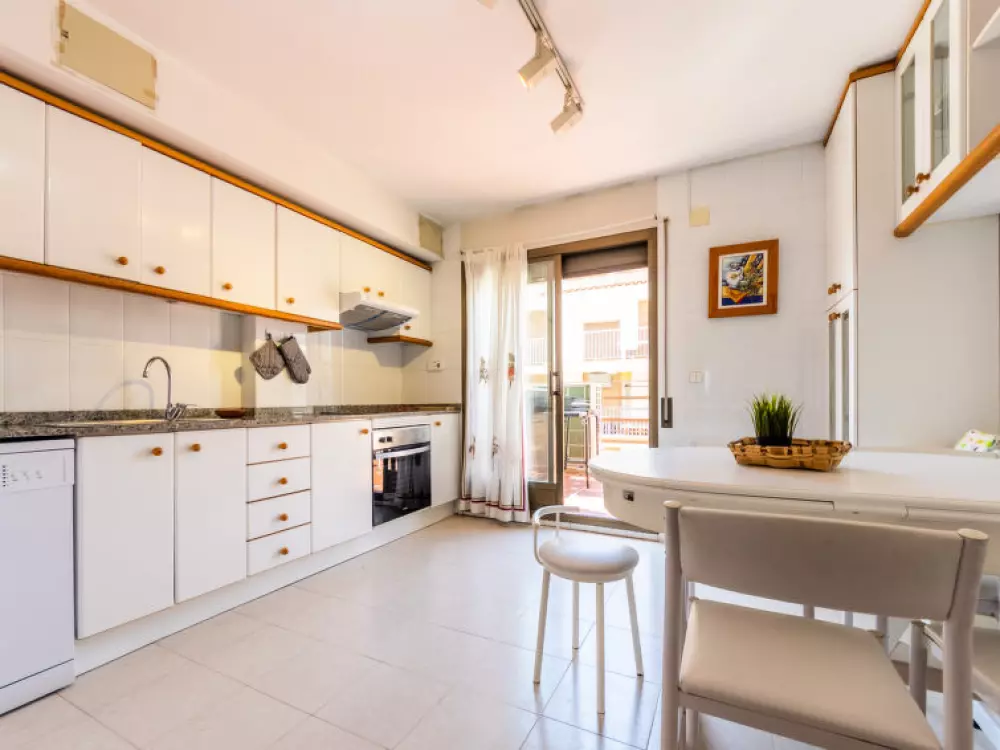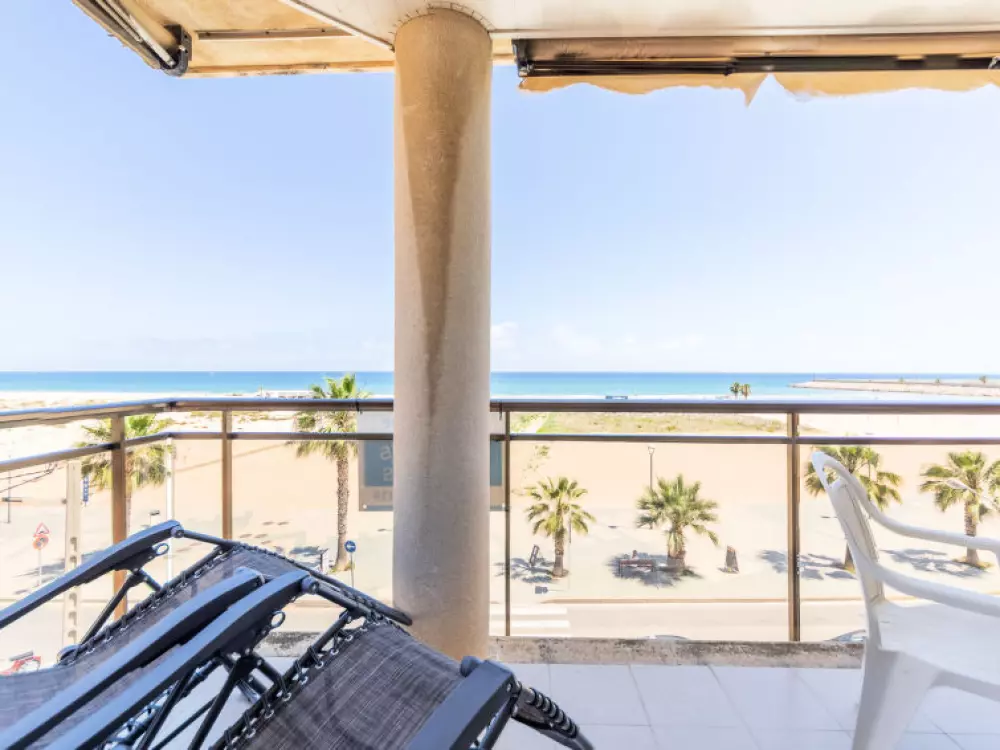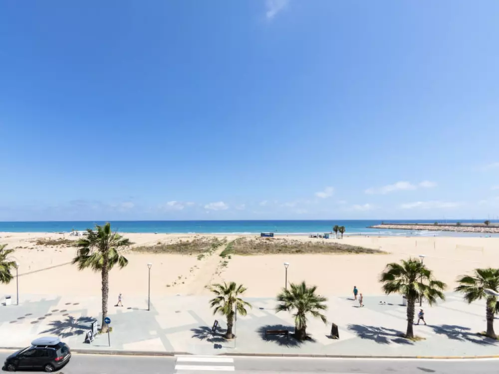 Torredembarra à 18 km de Tarragona: Petite résidence "Solarium". À 20 m de la mer, à, de la plage. En commun: jardin avec pelouse, piscine (5 x 8 m, profondeur 140 cm, disponibilité saisonnière: 10.Jun. - 15.Sep.). Bassin pour les enfants, douche extérieure. Infrastructures de la résidence: restaurant, café, ascenseur. Magasins 100 m, magasin d'alimentation 100 m, supermarché 150 m, centre commercial 19 km, restaurant 50 m, boulangerie 800 m, café, zone piétonne 20 m, centre à 10 minutes à pieds, arrêt de bus 200 m, gare ferroviaire "Renfe Torredembarra" 500 m. Port plaisance 300 m, tennis 2 km, centre équestre 2.5 km. Attractions à proximité: Port Aventura 30 km, Aquopolis 35 km, Jungle Trek 8 km. Les lacs connus sont facilement accessibles: Pantano de Foix 33 km, Bassa des Olles 85 km, Embalse de Siurana 60 km. Région de randonnées: La Musara 56 km, Ronda verda del Baix Gaia 5 km. Le propriétaire n'accepte pas les groupes de jeunes. Veuillez noter: autoroute 3 km de la maison. Route principale 700 m de la maison. Aéroport 80 km de la maison. Environnement très sensible au bruit. Silence et bonne tenue exigés.