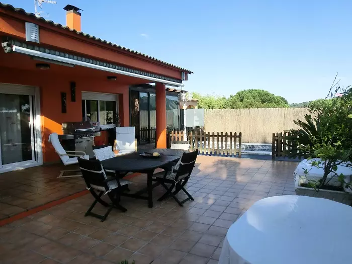 La maison dispose d'une piscine extérieure privée entourée d'une terrasse et une barbecue.