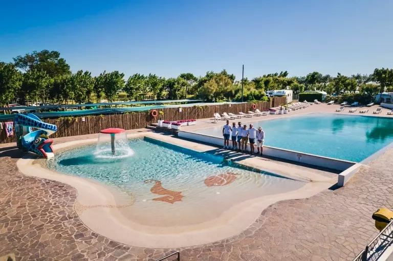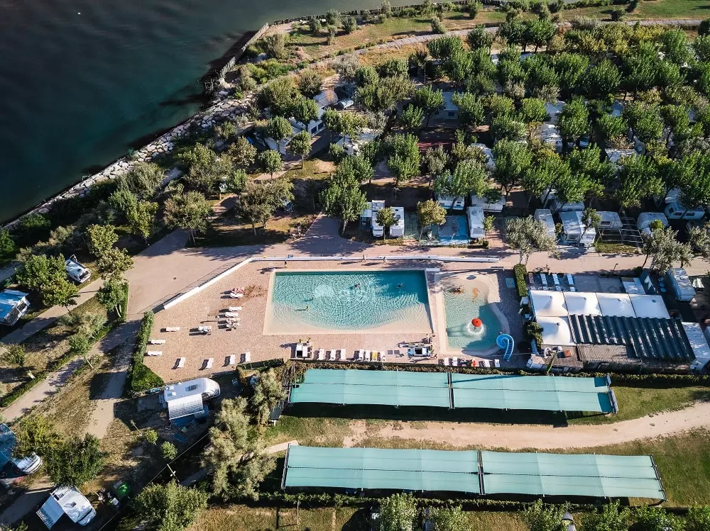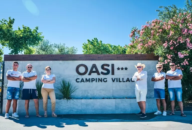 Le Camping Oasi, avec d'une plage privée spacieuse et équipée, et tout le confort. Un bar, une sandwicherie, un restaurant, des terrains de beach volley, des courts de tennis et des terrains de football à cinq. Piscines et un quai de bateau pour amarrer.