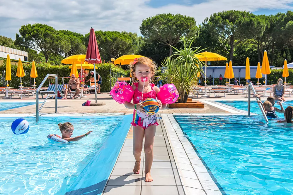 Le Camping Portofelice bénéficie d'un espace aquatique qui assure amusement et détente tout au long de la saison :