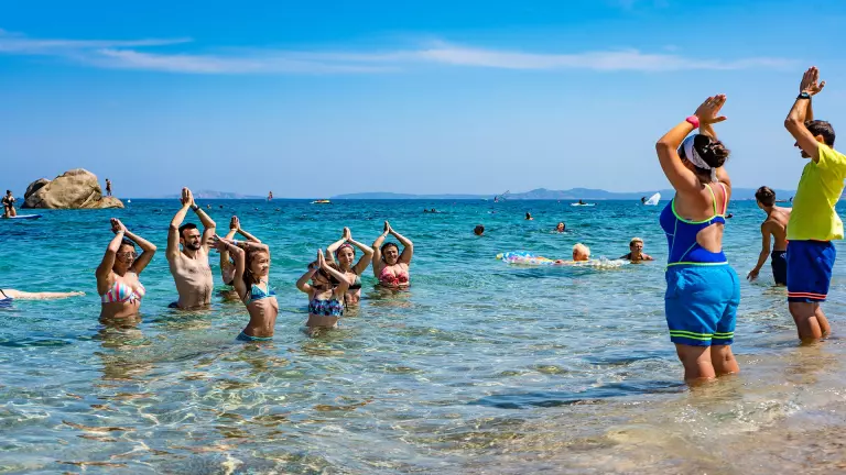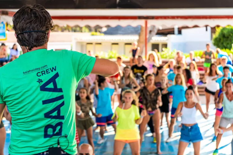 Une équipe d'animateurs s'occupe du divertissement au Camping Village Baia Blu La Tortuga, proposant une saison riche en rendez-vous, soirées musicales, bals, mini-club et activités pour les plus petits.