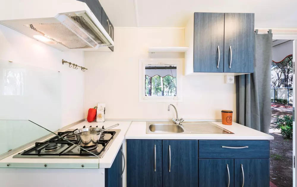 La zone Village offre un large choix de mobil-homes, avec TV-SAT et aire conditionné, et de caravanes. La zone Camping présente trois types d'emplacements, reliés à l'électricité, dont certains profitent d'une position panoramique sur la mer.