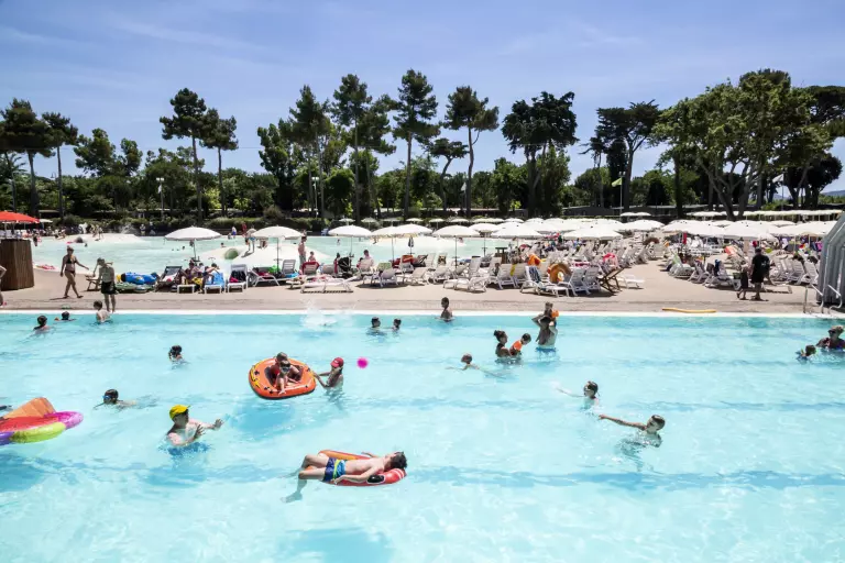Le complexe aquatique comprend des lagons, des îles, des toboggans, des jeux d'eau pour les enfants, un bain à remous, une piscine olympique pour les adultes, et une piscine chauffée et couverte en début de saison (selon la température extérieure). Les piscines sont équipées de parasols et transats (selon disponibilité) et un grand bar, et sont ouvertes du 20/04/24 au 22/09/24.