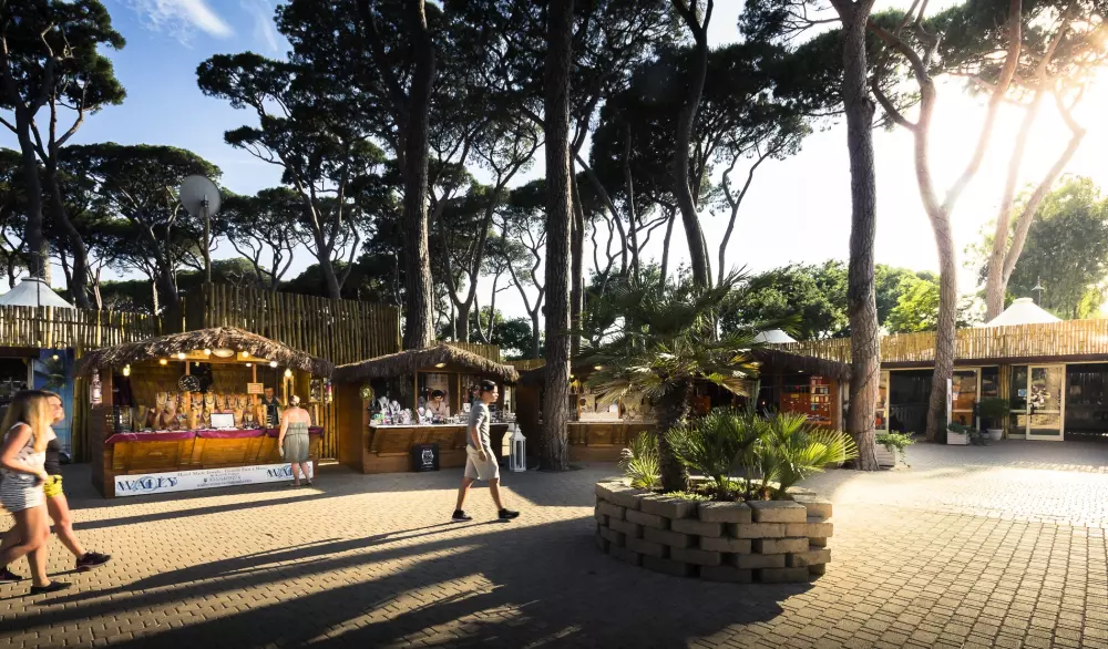 Le marché du camping propose un supermarché, de la presse, un tabac, une boutique de souvenirs, un bazar avec magasin de vêtements et une pharmacie, ouverts du 20/04 au 22/09.
