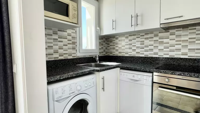 La cuisine indépendante est entièrement équipée avec une plaque vitrocéramique, un réfrigérateur, un micro-ondes, un four, un congélateur, un lave-linge, un lave-vaisselle et tous les ustensiles de cuisine nécessaires, dont de la vaisselle, des couverts, une cafetière, un grille-pain et un presse-agrumes.