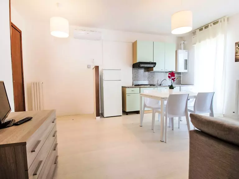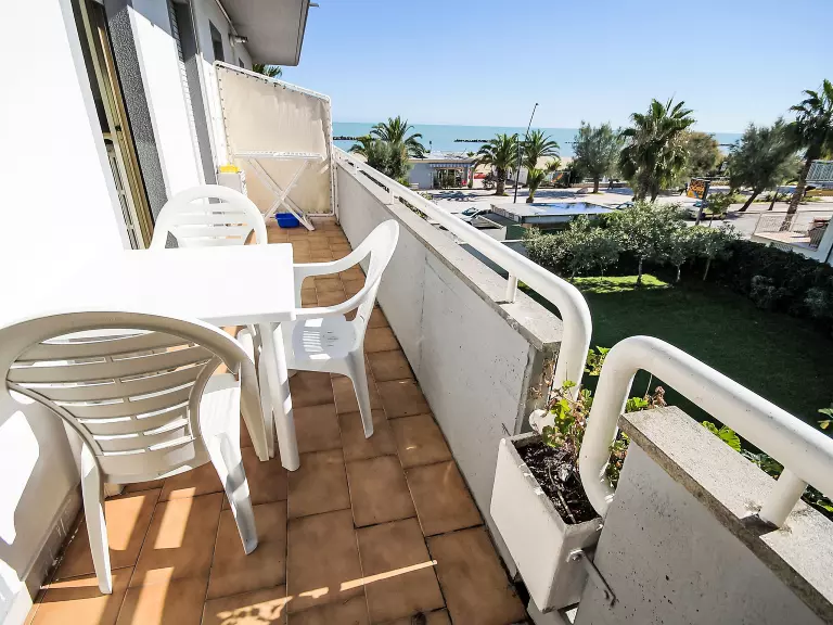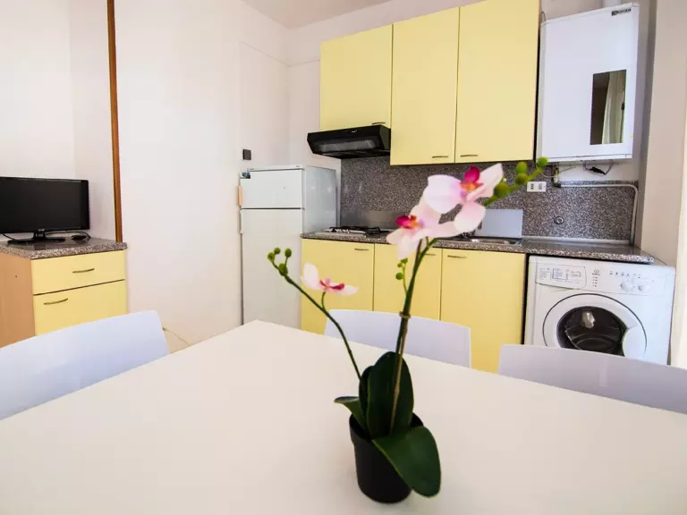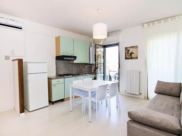 Apt 2 pièces 35 m2, à l'étage supérieur. Aménagement confortable et moderne: séjour/salle à manger avec 1 divan-lit, 1 lit gigogne et TV. Sortie sur le balcon. 1 chambre double. Coin cuisine (4 plaques de cuisson). Douche/bidet/WC. Chauffage, air-conditionné. Possibilité de chauffage uniquement du 01.11. au 15.04. Balcon. Mobilier de balcon. Vue latérale sur la mer. A disposition: lave-linge, coffre-fort. Internet (Connexion WIFI, gratuit). Garage (1 Voiture). Veuillez noter: maximum 1 animal/ chien de petite taille autorisé. Sans ascenseur. IT044066C2OKIY3KYC