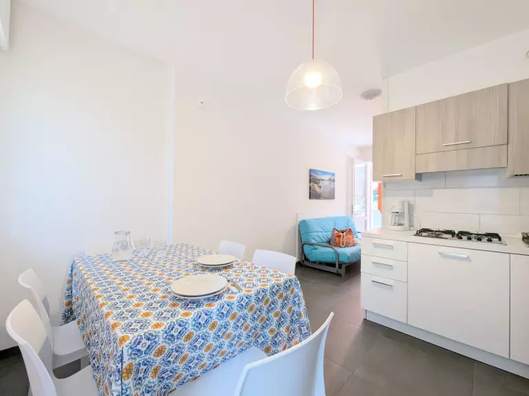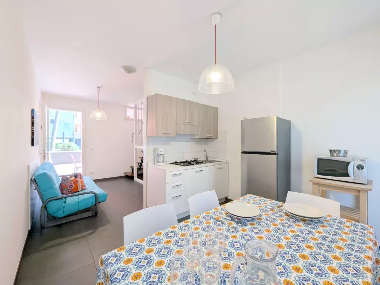 Apt 3 pièces 60 m2 sur 2 niveaux, au rez-de-chaussée. Clair, aménagement fonctionnel et moderne: séjour/chambre à coucher avec 1 divan-lit double, table pour les repas et Télévision numérique. Cuisine ouverte (4 feux, micro-ondes, congélateur, cafetière électrique). À l'étage supérieur: 1 chambre double. 1 chambre avec 2 lits. Douche/bidet/WC. Air-conditionné, chauffage à air chaud. Balcon, terrasse couverte. Meubles de terrasse, barbecue. Vue sur la piscine. A disposition: coffre-fort, lit bébé jusqu'à 2 ans (en sus). Place de parking (couvert, 1 Voiture). Veuillez noter: 1 animal/ chien autorisé. Entrée privée. La répartition des lits est flexible: Il y a plus de couchages que le nombre maximum de personnes admis dans la location. Ce nombre maximum doit néanmoins être respecté. IT027034B4R2S2DB5J