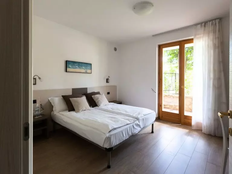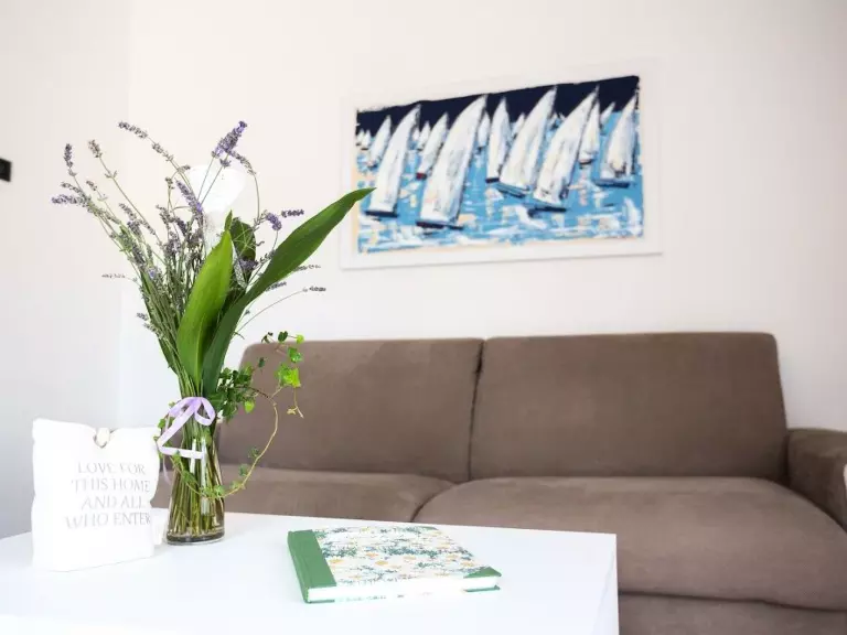 The flat "GARDEN" is located on the ground floor of Holoday House Margherita, it has the exclusive use of a 60m² garden of olive trees with a beautiful view of the lake. It is in a very quiet location but at the same time close to the village centre where you can find supermarkets, restaurants, bars, post office, ATMs, pharmacy, bus and boat stop, kite and wind surfing schools, boat and sup rental.