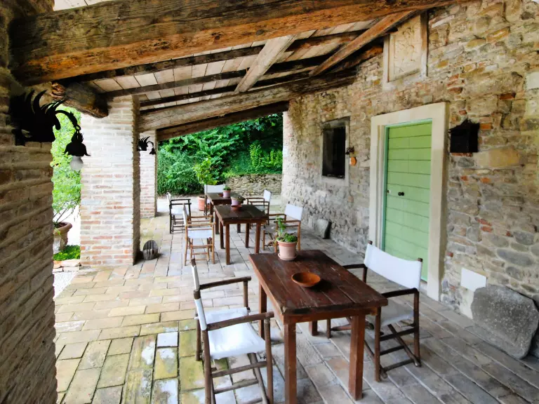 Parco San Bartolo: Cottage rustique, simple, historique "Casamare Gabicce", de 2 étages, du 17ème siècle, environné par les prés et champs. 8 appartements dans la résidence. Dans le haut de la station de Baia Vallugola, à 2.7 km du centre de Gabicce Monte, à 5 km du centre de Cattolica en-dehors de la localité, situation isolée, ensoleillée sur une colline, à 1.5 km de la mer, à 1.5 km de la plage, dans la verdure. En commun: terrain à l'état naturel, jardin (pas clôturé) avec plantes et arbres, champ, piscine (40 m2, profondeur 120 cm, disponibilité saisonnière: 01.Jun. - 15.Oct.). Piscine de forme irrégulière. Douche extérieure, bain à remous , jardinet, terrasse, meubles de jardin. Infrastructures de la résidence: Connexion WIFI. Change de linge 1 fois par semaine. Changementde linge de toilette 2 fois par semaine. Nettoyage possible (en sus). Accès en voiture par un chemin de 200 m de long (chemin non goudronné). Place de parking sur le terrain. Magasins 1.5 km, supermarché 7 km, arrêt de bus 800 m, gare ferroviaire "Cattolica" 5 km, plage de graviers "Baia Vallugola" 1.5 km. Marina 1.5 km. Attractions à proximité: Gradara 3.5 km, Casteldimezzo 3.5 km, Pesaro 13 km, Rimini 30 m. Région de randonnées: Parco San Bartolo 200 m, Parco Sasso Simone Simoncello 55 km. Veuillez noter: voiture recommandée. Vente locale de produits de la ferme.