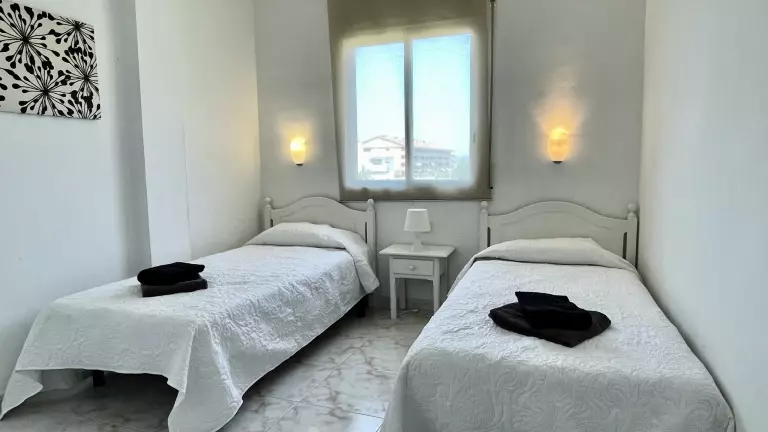 L'espace commun avec un grand jardin, une piscine et un bassin pour enfants est un plus pour cet appartement, sans parler de la situation au pied de la plage.