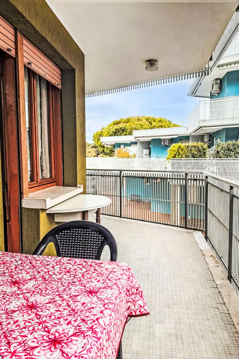 Résidence "Moschettieri". Au centre de Bibione, à, de la mer, à 650 m de la plage. Parking public possible dans la rue. Supermarché, restaurant, bar 500 m, café 200 m, arrêt de bus 100 m, plage de sable 400 m, centre thermal 300 m. Veuillez noter: La photo ne montre qu'un exemple de location de vacances. D'autres appartements sont également proposés à la location dans cette maison de vacances.