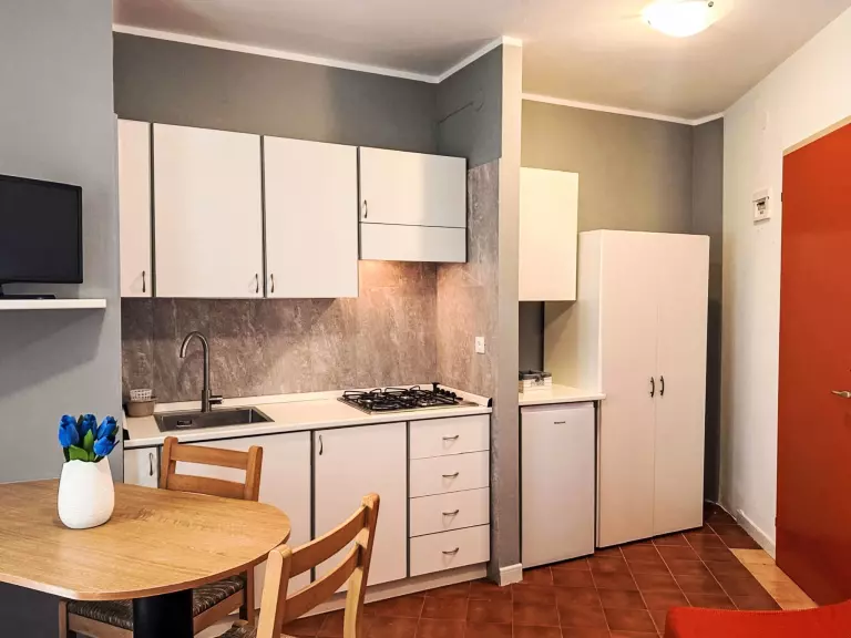 Studio 28 m2. Aménagement simple et fonctionnel: séjour/salle à manger avec 1 divan-lit double, 1 grand-lit, table pour les repas et TV. Sortie sur la terrasse. Petite coin cuisine (4 plaques de cuisson, bouilloire électrique). Douche/bidet/WC. Air-conditionné, chauffage à air chaud, chauffe eau (50 litres). Grande terrasse. Meubles de terrasse. Veuillez noter: logement non-fumeur. Maximum 1 animal/ chien autorisé. IT027034B48BEG8YCY