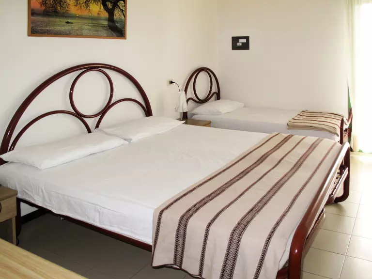 Apt 2 pièces 35 m2, à l'étage supérieur. Aménagement fonctionnel: séjour/chambre à coucher avec 1 divan-lit double, table pour les repas, coin-cuisine et TV (satellite). Sortie sur le balcon. 1 chambre avec 1 lit et 1 lit double. Coin cuisine (Poêle à gaz, 4 feux, micro-ondes, congélateur, cafetière électrique). Douche/bidet/WC. Air-conditionné, chauffage à air chaud. Chauffage pas dans toutes les pièces. Balcon. Mobilier de balcon. A disposition: coffre-fort, chaise haute pour enfant, lit bébé (en sus). Internet (Connexion WIFI, gratuit). Place de parking (couvert, 1 Voiture) près de la maison. Maximum 1 animal/ chien autorisé. IT027034C2ZBMWHSNM
