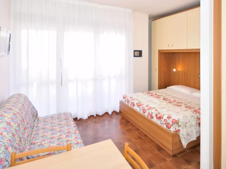 Studio 25 m2, à l'étage supérieur. Clair, aménagement fonctionnel: séjour/chambre à coucher avec 3 couchages, table pour les repas, coin-cuisine et TV (satellite). Sortie sur le balcon. Coin cuisine (Poêle à gaz, 4 feux, micro-ondes, cafetière électrique). Douche/WC. Air-conditionné, chauffage à air chaud. Balcon. Mobilier de balcon. A disposition: chaise haute pour enfant, lit bébé (en sus). Internet (Connexion WIFI, gratuit). Garage sur le terrain (1 Voiture) près de la maison. Maximum 1 animal/ chien autorisé. Cette location est un exemple de location / d'appartement. IT027034C2DKSL2WCA