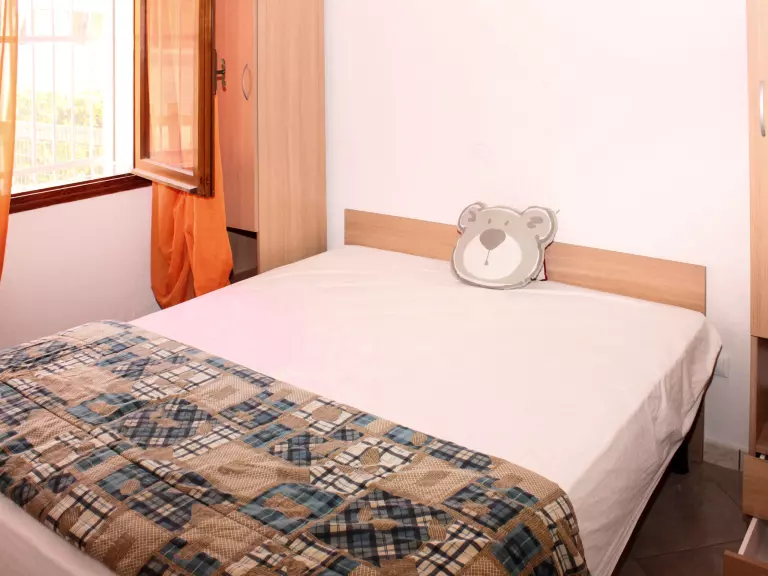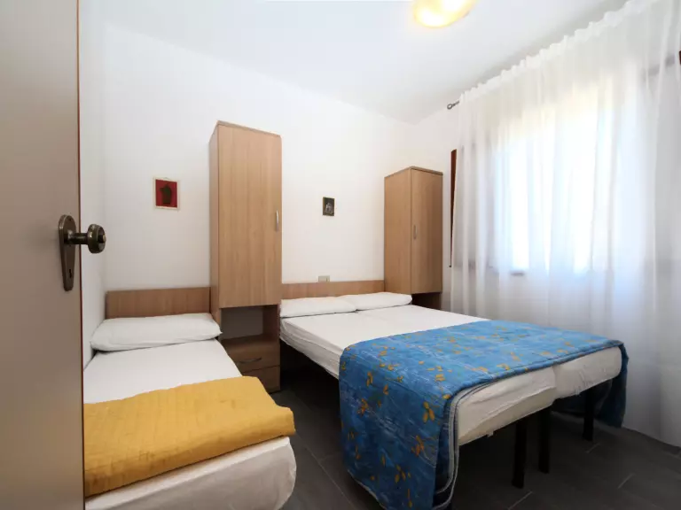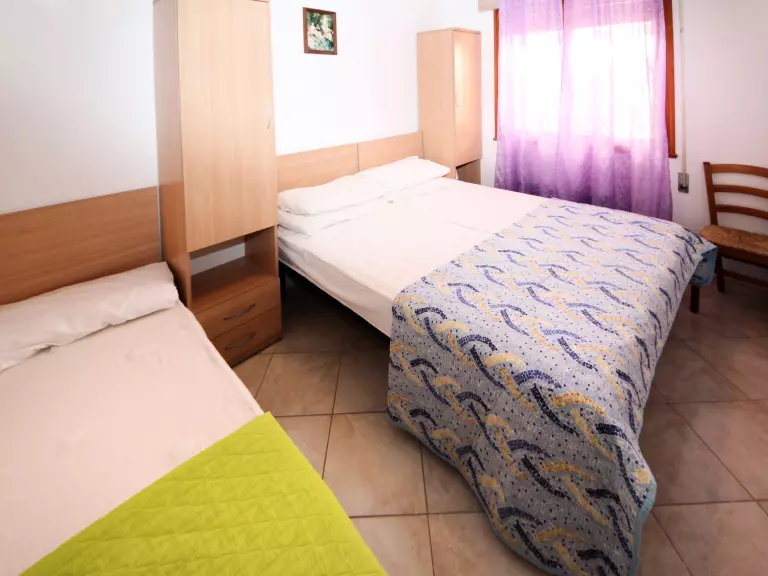 Apt 3 pièces 40 m2. Aménagement fonctionnel: séjour/chambre à coucher avec 1 divan-lit, table pour les repas, TV, air-conditionné et chauffage à air chaud. Sortie sur le balcon, sur la terrasse. 1 chambre double. 1 chambre avec 1 lit et 1 lit double. Coin cuisine (Poêle à gaz, 4 feux, micro-ondes, congélateur). Douche/WC. Air-conditionné (en sus). Petit balcon ou petit jardinet partiellement couvert. Mobilier de balcon. A disposition: lave-linge, lit bébé. Internet (Connexion WIFI, en sus). Place de parking (1 Voiture) près de la maison. Veuillez noter: maximum 1 animal/ chien autorisé. Entrée privée. IT029040C2FK3JCQ2D