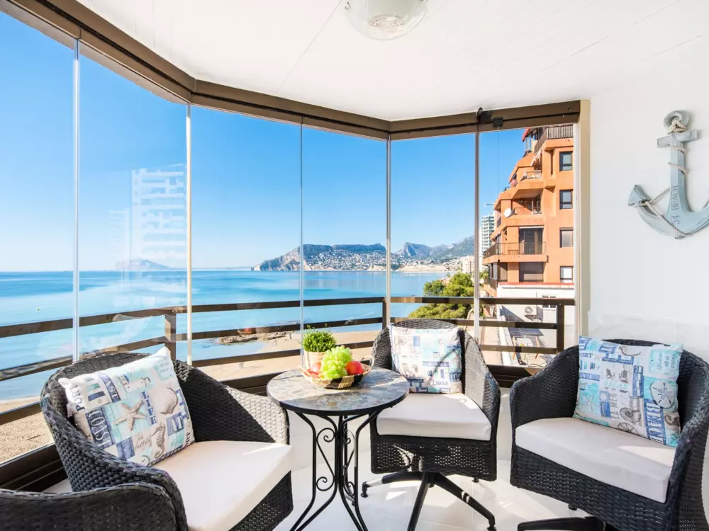 Splendide appartement de vacances à Calpe, Costa Blanca, conçu pour accueillir 4 personnes avec deux chambres et une salle de bain. Le logement dispose de la climatisation dans le salon et les chambres pour assurer un séjour confortable. À L'INTÉRIEUR: Ce charmant appartement se compose d'un salon-salle à manger lumineux avec TV SAT/TDT et belle vue sur la mer, avec accès à la terrasse pour prendre le petit déjeuner et les repas face à la mer. La cuisine séparée est entièrement équipée avec une plaque vitrocéramique et un lave-vaisselle. Les deux chambres comprennent chacune un lit double et il y a une salle de bains avec douche pour plus de commodité. EMPLACEMENT: Situé dans un endroit idéal pour passer des vacances sans avoir besoin de véhicule, l'appartement se trouve à seulement 80 mètres de la plage de sable et des restaurants. Le centre de Calpe est à 2,3 kilomètres à pied et le supermarché le plus proche à 400 mètres, offrant un accès facile à tous les types de services. REMARQUES : Une connexion Wi-Fi gratuite est fournie pour rester connecté pendant votre séjour. Les animaux ne sont pas admis, garantissant un environnement propre et calme. Vivez des vacances inoubliables dans ce splendide appartement avec vue mer sur la magnifique Costa Blanca. Ce logement est diffusé par un professionnel. Sauf mention contraire, les prestations, telles que ménage, draps, serviettes etc.. ne sont pas incluses dans le prix de cette location. Si animaux de compagnie admis (indiqué dans annonce), un supplément peut s'appliquer. Seuls les équipements mentionnés spécifiquement dans cette annonce sont présents. Un équipement non indiqué n'est pas considéré comme présent. Sauf indication de borne de charge électrique présente dans le logement, la recharge des véhicules électriques est interdite.