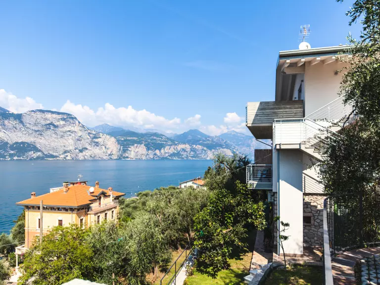 Belle maison à 3 apts moderne "La Maison Blanche", de 2 étages, rénovée en 2017. 3 appartements dans la même entité. Dans le haut de la station de Brenzone, à 400 m du centre de Brenzone, sur un versant, quartier résidentiel, à 300 m du lac. En commun: terrain, jardin avec arbres, place de parking sur le terrain. Magasins 150 m, supermarché 500 m, arrêt de bus 160 m, plage de graviers 300 m. Attractions à proximité: Val di Sogno 6 km, Malcesine 8 km, Torri del Benaco 13 km. Le propriétaire n'accepte pas les groupes de jeunes. Veuillez noter: le propriétaire habite dans la même maison.